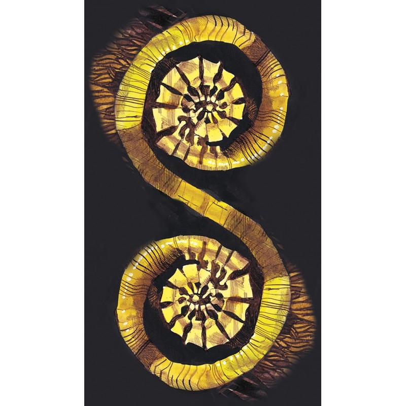 This deck is a masterpiece of the renowned artist and master Sergio Toppi. Published many years ago, ahead of its time, as “Tarot of the Origins”, it carries the reader into the world of early mankind, when spirituality and the material world were one and the same. The deck is all about raw emotions: extremely loud when it shouts, uncannily silent when it’s quiet. Wisdom, after all, is not words: it is a spark of light in the night.