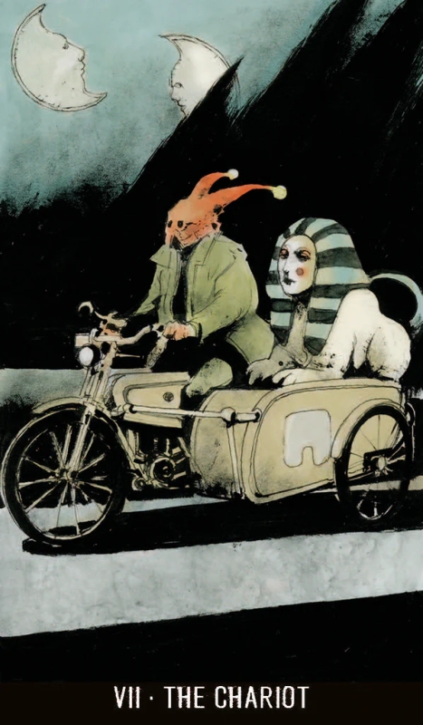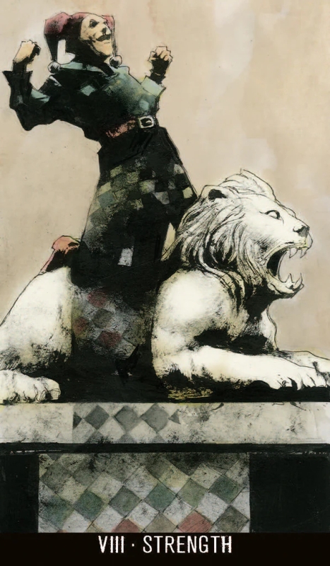 In diesem Premium Deck ist die Dunkle Seite des Narrs, hier also treffender des Jokers, von Corrada Roi illustriert.